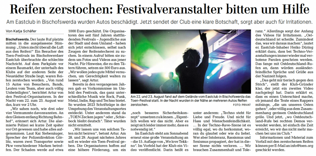 Jegliche Hinweise könnt ihr an die TOEN-Mailadresse info@toen.org senden. Unsere TOEN-Crew und der KulturOrt e.V. bedanken sich jetzt schon mal für jeden Hinweis und auch für jedwede Unterstützung.