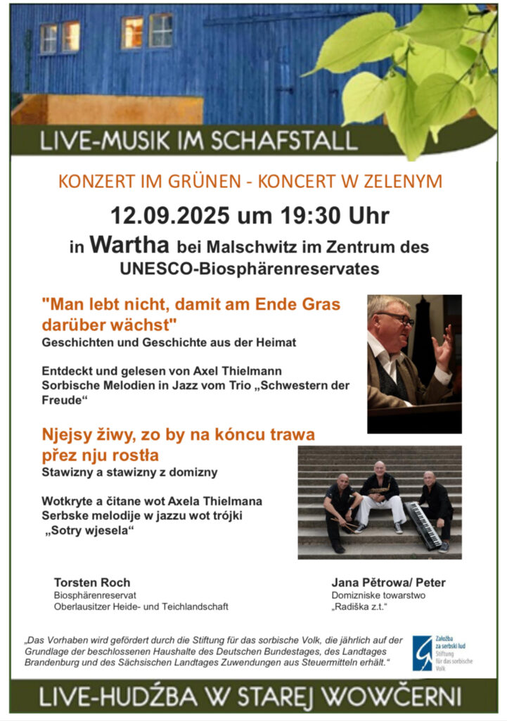 Der KulturOrt e.V. hat eine weitere Veranstaltung am 12.09.2025 um 19:30 Uhr in Wartha (bei Malschwitz) im Zentrum des UNESCO-Biosphärenreservates